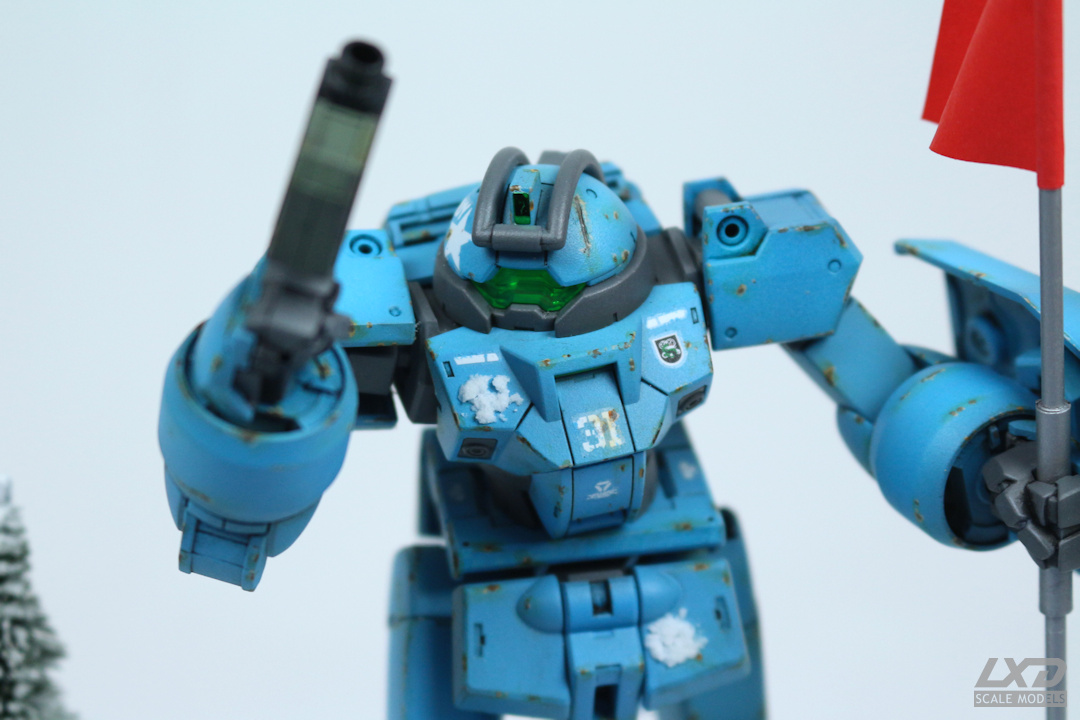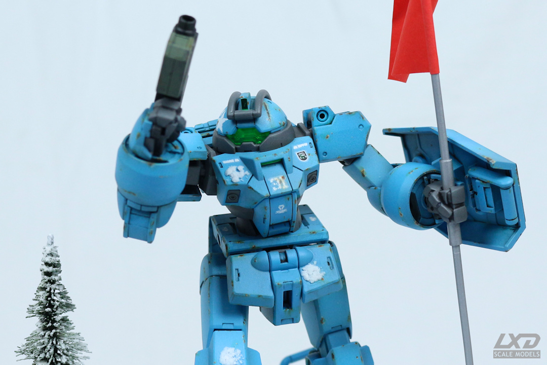 mit denen der Mecha übersäht ist. Offenbar ging der Fahneneroberung eine heftige Schneeballschlacht
