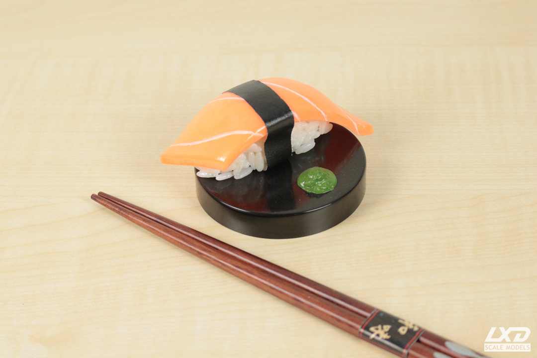 Der Bausatz beinhaltet Teile zum Bau eines Sake Nigiri (Lachs). Weitere Varianten wie Thunfisch Nigiri, Schrimp Nigiri,