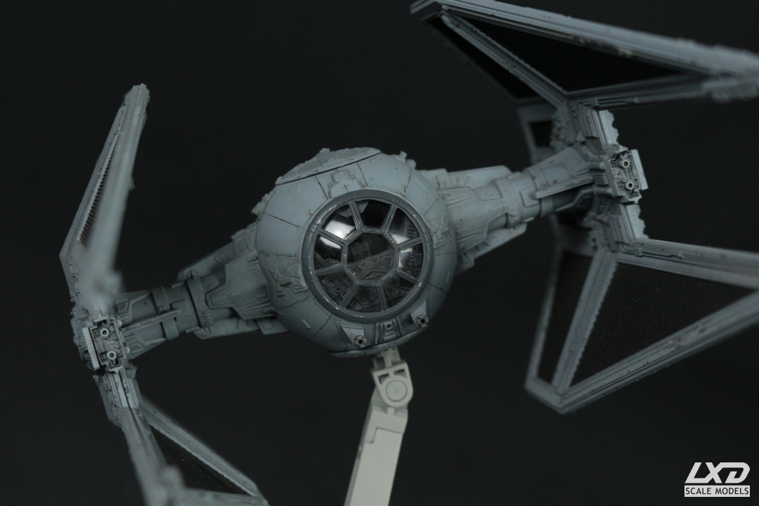 Der imperiale Abfangjäger wurde nach Plan gebaut und mit Acrylfarben airbrushlackiert. Außer einem Pinwash erhielt der TIE nur dezente Alterungsspuren mit dem Pinsel. Beim Bau gab es keinerlei Probleme, die Passgenauigkeit bei diesem Bausatz ist Bandai-typisch hervorragend.